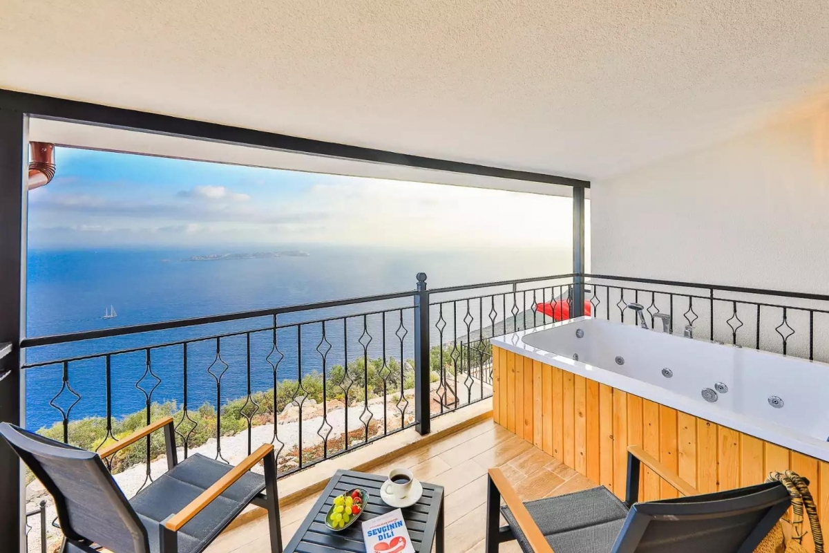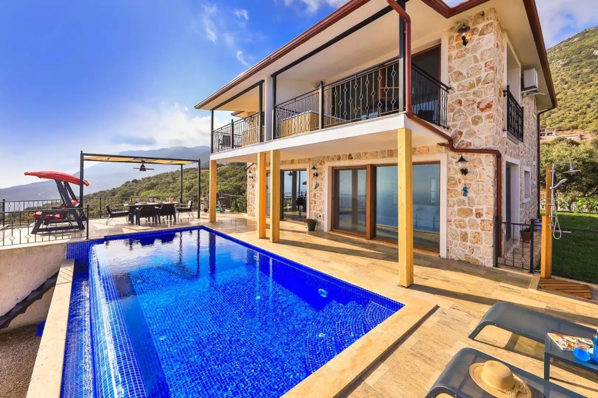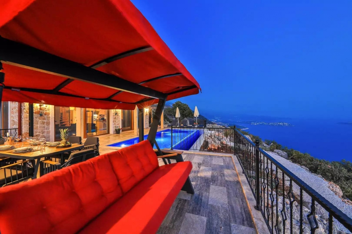Kaş Gökçeören bölgesinde yer alan muhteşem deniz manzarasına sahip kiralık tatil villasıdır. Kiralık Villa Blue Cliff , deniz manzaralı villalar, jakuzili villalar ve doğa içerisinde villalar kategorisinde yer almaktadır. Villamız 3 yatak odalı 6 kişi konaklama olanağına sahiptir. Kendini gösteren, modern ve çarpıcı bir etki yaratan, bir villadır. Villamız, havuz terasından muhteşem deniz manzarasına hakimdir. Tatiliniz sırasında kendinizi şımartmak en doğal hakkınız olmakla birlikte Villa Blue Cliff, tam da bunun için var. Deniz manzarası eşliğinde hem keyifli vakitler geçirebilir hem de tüm yılın yorgunluğunu atabilirsiniz.İç mekanı da dış ambiyansla bütünleşen detaylar sunan villamız modern ve konforlu mobilyalara sahip olup şehrin hengamesinden uzakta ve doğal atmosferin dokusuna uygundur. Kalabalık aileler ve arakadaş grupları için ideal seçenekler arasındadır.