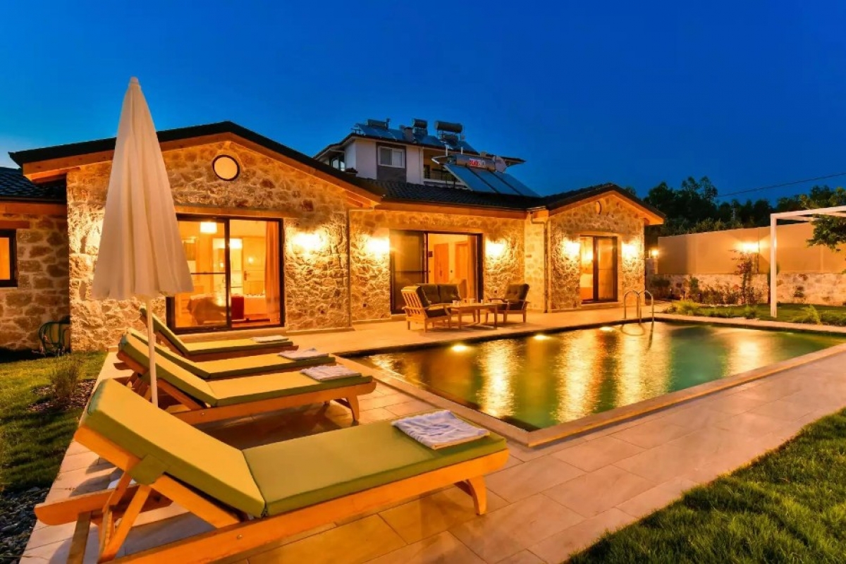Fethiye Çamköy bölgesinde muhafazakar kiralık tatil villasıdır. Kiralık Villa Canözü 1, balayı villaları, jakuzili villalar, doğa içerisinde villalar ve muhafazakar villalar kategorisinde yer almaktadır. Misafirlerine her zaman mahremiyet içinde bir tatil sunan bu villada havuz bölümü tamamen istenmeyen bakışlardan uzakta kalacak şekilde dizayn edilmiştir. Korunaklı olan bu bölümde, muhafazakar ve gizlilik konusunda özel hassasiyetlere sahip misafirler gönül rahatlığıyla tatil yapabiliyor. Bu villada her şey istediğiniz gibi tasarlanmıştır. Konforunuz için özel olarak tasarlanan Villa Canözü 1, ihtiyaçlarınızı tam anlamıyla karşılamak için gereken her şeyi bünyesinde barındırıyor. Villamız size bütün olanaklarıyla muhteşem bir tatil olanağı sunuyor. 2 yatak odası 4 kişilik konuk kapasitesine sahip olan villa özellikle hem balayı çiftleri hem de çekirdek aileler için ideal bir seçenektir. Konforlu ve lüks detayları ile misafirlerini cezbeden villa, sadece size özel bir tatil için hazır.