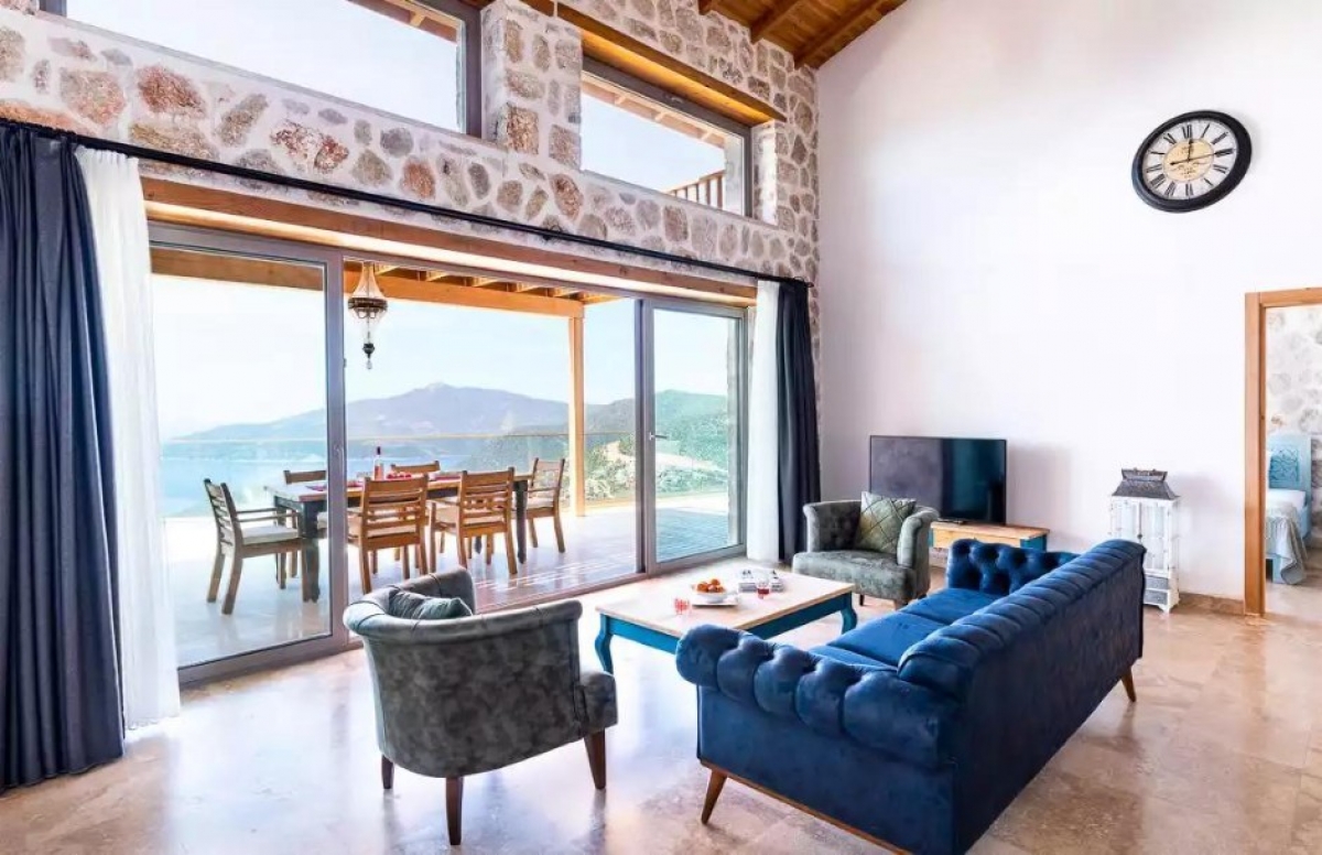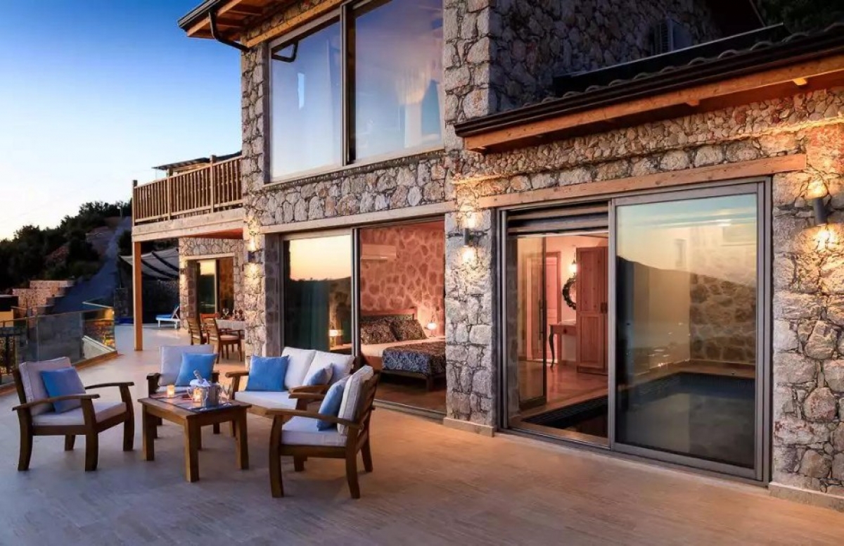 Kalkan Kördere bölgesinde en tepe noktada bulunan harika deniz ve Kalkan manzarasına sahip lüks kiralık villa seçeneklerimizdendir. Kiralık villa Kaya, deniz manzaralı villalar, kapalı havuzlu villalar, jakuzili villalar ve muhafazakar villalar kategorisinde yer almaktadır. Villamız 3 yatak odalı, sonsuzluk havuzlu lüks kiralık villadır. 2019 yılında inşaası tamamlanmış olup tüm her şey en ince ayrıntısına kadar düşünülerek tasarlanmıştır. 6 kişiye kadar konaklama kapasitesine sahip olan villamız odalarından ve salondan görülebilen muhteşem deniz ve enfes doğa manzarasına hakimdir. Retro tarzı dekorasyonu , geniş tavanlı yaşam alanı ve de keyifli havuzuyla harika zamanlar geçirebilirsiniz. Ailenizle , arkadaş grubunuzla veya balayı tatilleri için unutulmaz zamanlar geçirebileceğiniz kiralık tatil villalarından biridir. Ayrıca villamızın hemen yanında 3'er yatak odalı Villa Sedir ve Villa Ambar bulunmakta olup; daha kalabalık ve ayrı ayrı villa kiralamak isteyen misafirlerimiz için ideal bir seçenek olacaktır.