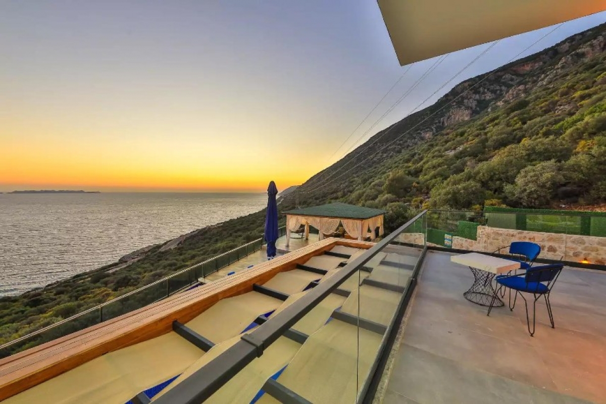 Kaş Gökseki bölgesinde yer alan muhteşem deniz manzaralı kiralık tatil villasıdır. Kiralık Villa Sea Garden, deniz manzaralı villalar, denize yakın villalar, jakuzili villalar kategorisinde yer almaktadır. Villamız 3 yatak odalı 6 kişi konaklama olanağına sahiptir. Villa Sea Garden , Misafirlerimizin beklentilerinin farkında olarak en ince detaylara kadar planlanan villamız tüm yıl boyunca iple çektiğiniz tatilinize ev sahipliği yapmaya aday seçenekler arasında en üst sırada yer almaktadır. Villamız mutfak kısmında misafirlerimizin tüm ihtiyaçlarını karşılayacak şekilde bütün mutfak araç gereçleri bulunmaktadır. Mükemmel arsa üzerine kurulmuş olan villamız eşsiz deniz manzarasına sahip olup denize mesafesi 1 km mesafede yer almakatadır.