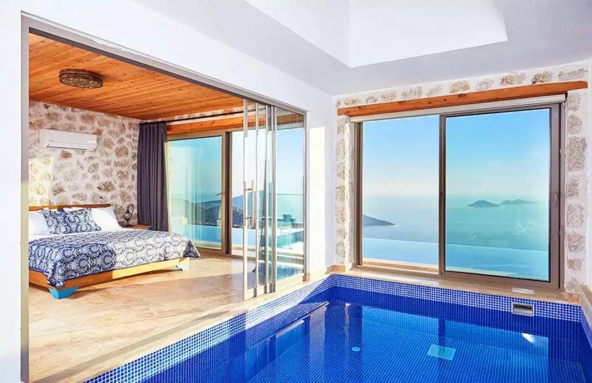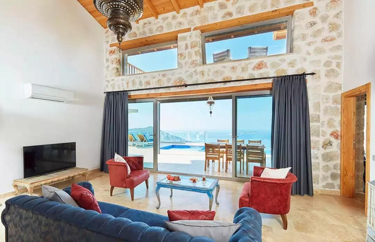 Kalkan Kördere bölgesinde en tepe noktada bulunan harika deniz ve Kalkan manzarasına sahip lüks kiralık villa seçeneklerimizdendir. Kiralık villa Sedir, deniz manzaralı villalar, kapalı havuzlu villalar, jakuzili villalar ve muhafazakar villalar kategorisinde yer almaktadır. Villamız 3 yatak odalı, sonsuzluk havuzlu lüks kiralık villadır. 2019 yılında inşaası tamamlanmış olup tüm her şey en ince ayrıntısına kadar düşünülerek tasarlanmıştır. 6 kişiye kadar konaklama kapasitesine sahip olan villamız odalarından ve salondan görülebilen muhteşem deniz ve enfes doğa manzarasına hakimdir. Retro tarzı dekorasyonu, geniş tavanlı yaşam alanı ve de keyifli havuzuyla harika zamanlar geçirebilirsiniz. Ailenizle , arkadaş grubunuzla veya balayı tatilleri için unutulmaz zamanlar geçirebileceğiniz kiralık tatil villalarından biridir. Ayrıca villamızın hemen yanında 3'er yatak odalı Villa Ambar ve Villa Kaya bulunmakta olup; daha kalabalık ve ayrı ayrı villa kiralamak isteyen misafirlerimiz için ideal bir seçenek olacaktır.