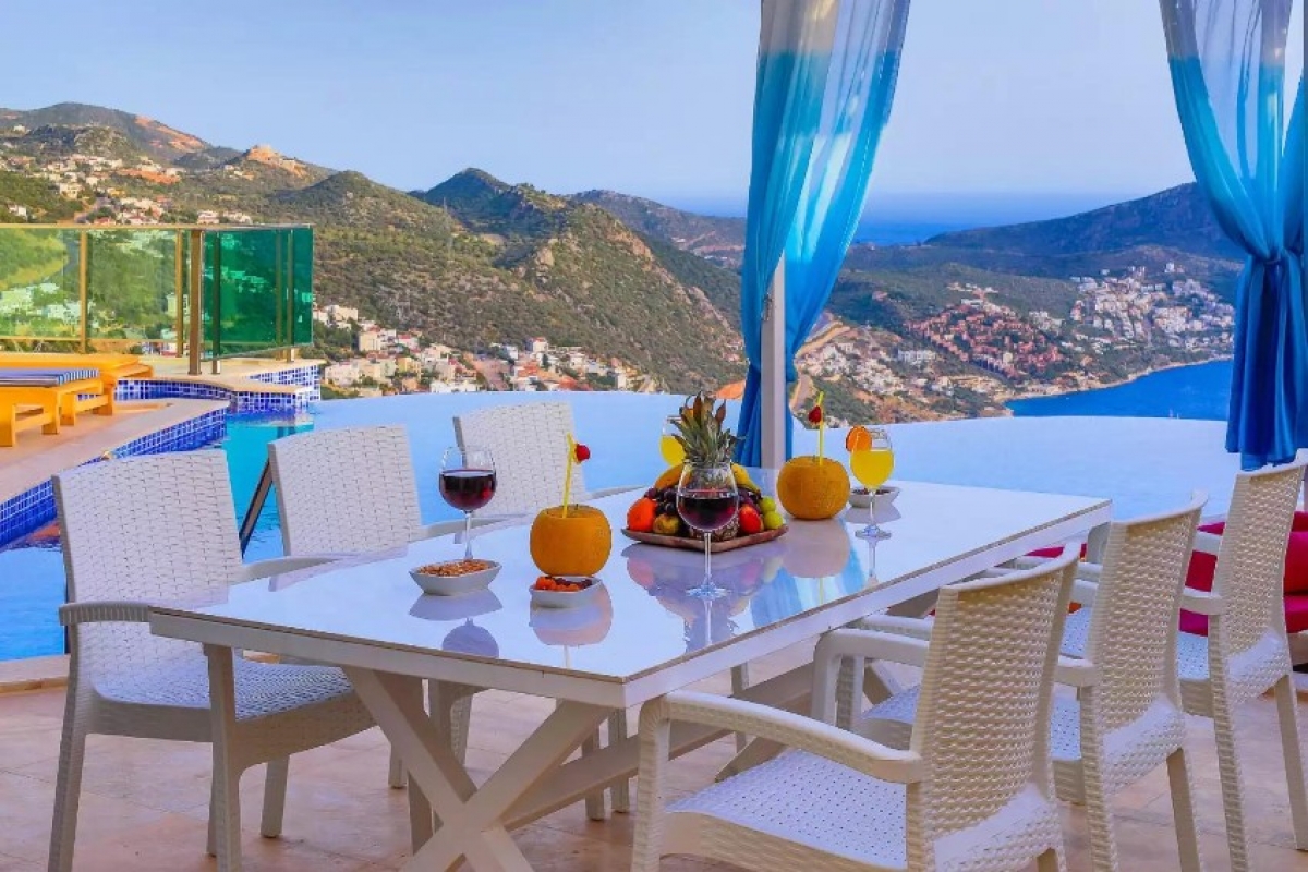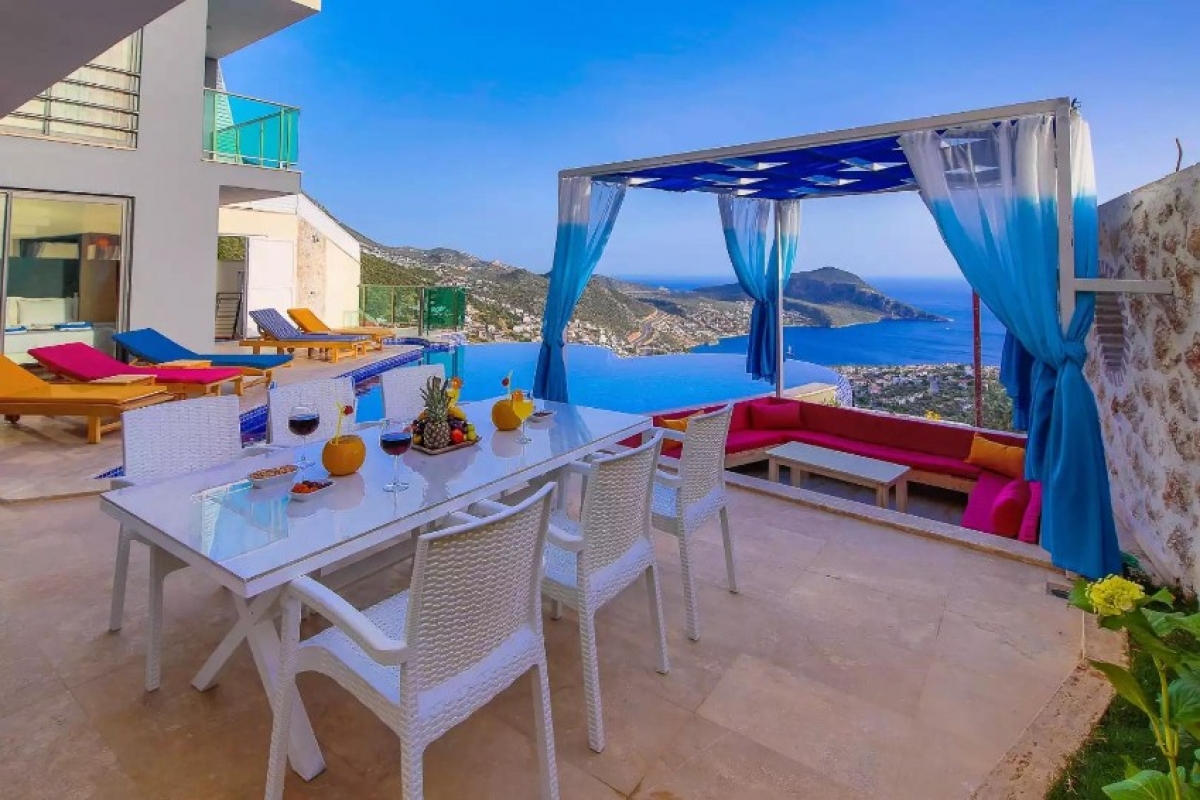 Kalkan Akbel bölgesinde eşsiz deniz ve doğa manzarasını sessiz, sakin, huzurlu bir ortamda lüks ve ayrıcalıklı detaylarıyla siz değerli misafirlerimizin, beğenisine sunan 3 yatak odalı 6 kişi konaklama kapasiteli kiralık lüks villadır. Kiralık Villa Tarabya, muhafazakar villalar, jakuzili villalar, deniz manzaralı villalar ve lüks villalar kategorisinde yer almaktadır. Büyüleyici deniz ve doğa manzarasına sahip odalarıyla ön plana çıkan villada, akşamları sevdiklerinizle birlikte unutulmaz anlar yaşayabilirsiniz. Özel, kalp şeklindeki, denizle bütünleşmiş sonsuzluk havuzunda tatilin keyfini sürebilirsiniz. Villamızın havuzu korunaklıdır. Küçük arkadaş grupları ve muhafazakar aileler için oldukça ideal bir tatil villasıdır.