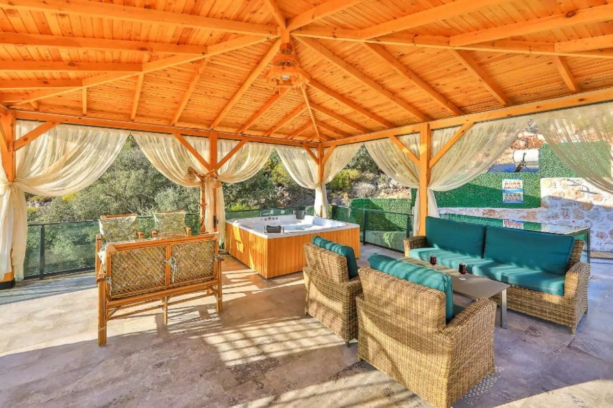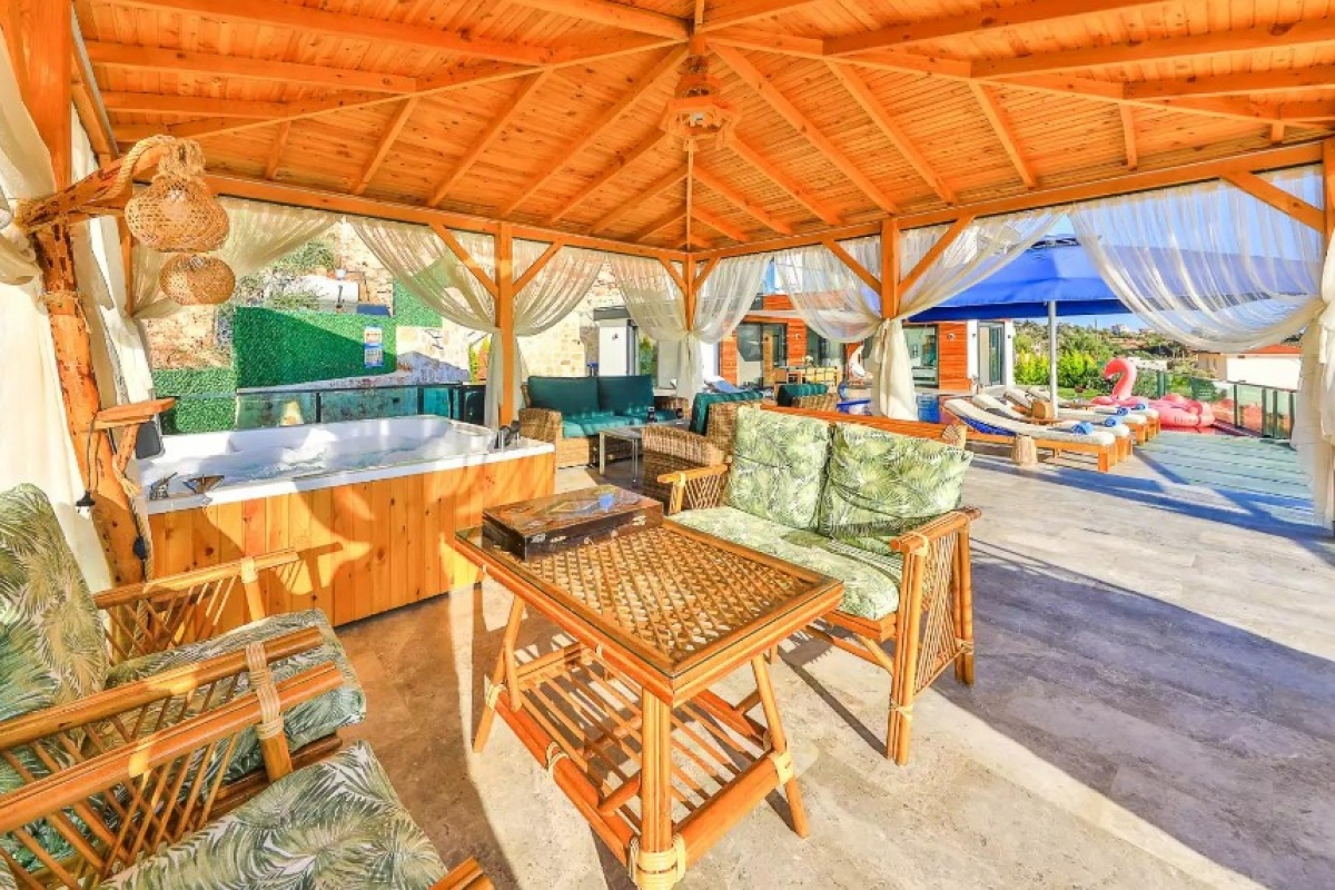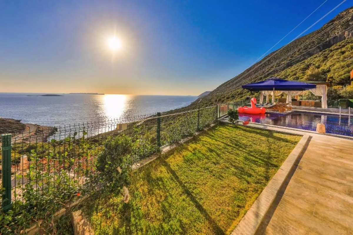 Kaş Gökseki bölgesinde yer alan muhteşem deniz manzaralı kiralık tatil villasıdır. Kiralık Villa Sea Garden, deniz manzaralı villalar, denize yakın villalar, jakuzili villalar kategorisinde yer almaktadır. Villamız 3 yatak odalı 6 kişi konaklama olanağına sahiptir. Villa Sea Garden , Misafirlerimizin beklentilerinin farkında olarak en ince detaylara kadar planlanan villamız tüm yıl boyunca iple çektiğiniz tatilinize ev sahipliği yapmaya aday seçenekler arasında en üst sırada yer almaktadır. Villamız mutfak kısmında misafirlerimizin tüm ihtiyaçlarını karşılayacak şekilde bütün mutfak araç gereçleri bulunmaktadır. Mükemmel arsa üzerine kurulmuş olan villamız eşsiz deniz manzarasına sahip olup denize mesafesi 1 km mesafede yer almakatadır.
