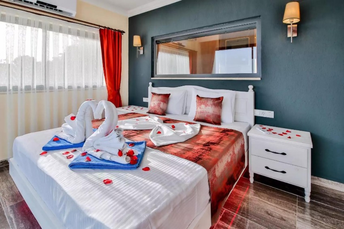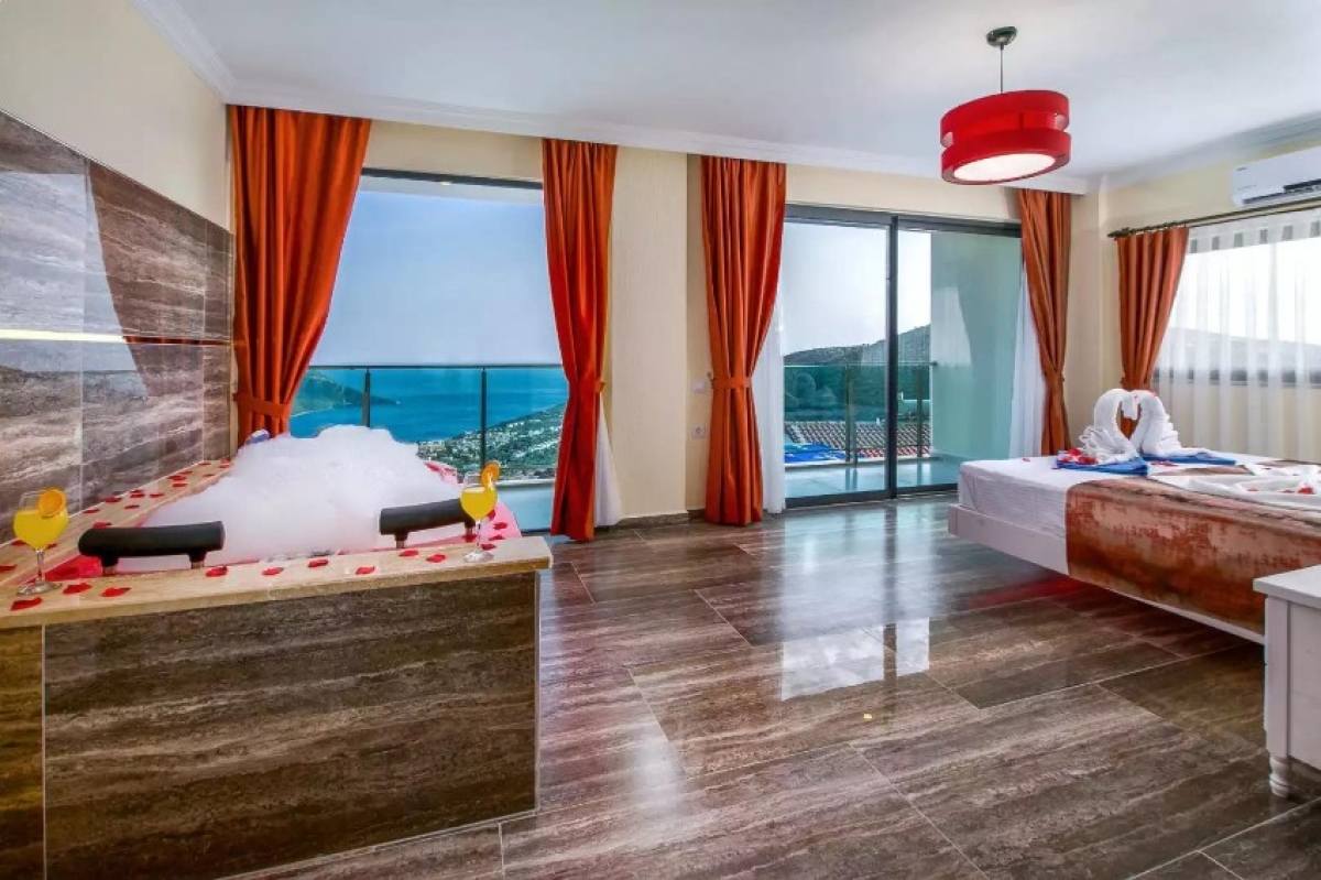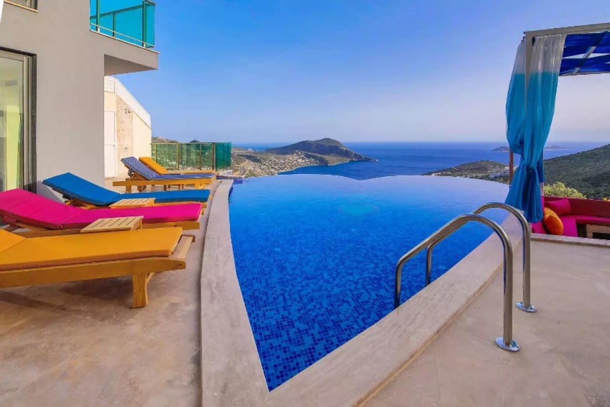 Kalkan Akbel bölgesinde eşsiz deniz ve doğa manzarasını sessiz, sakin, huzurlu bir ortamda lüks ve ayrıcalıklı detaylarıyla siz değerli misafirlerimizin, beğenisine sunan 3 yatak odalı 6 kişi konaklama kapasiteli kiralık lüks villadır. Kiralık Villa Tarabya, muhafazakar villalar, jakuzili villalar, deniz manzaralı villalar ve lüks villalar kategorisinde yer almaktadır. Büyüleyici deniz ve doğa manzarasına sahip odalarıyla ön plana çıkan villada, akşamları sevdiklerinizle birlikte unutulmaz anlar yaşayabilirsiniz. Özel, kalp şeklindeki, denizle bütünleşmiş sonsuzluk havuzunda tatilin keyfini sürebilirsiniz. Villamızın havuzu korunaklıdır. Küçük arkadaş grupları ve muhafazakar aileler için oldukça ideal bir tatil villasıdır.