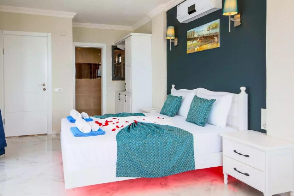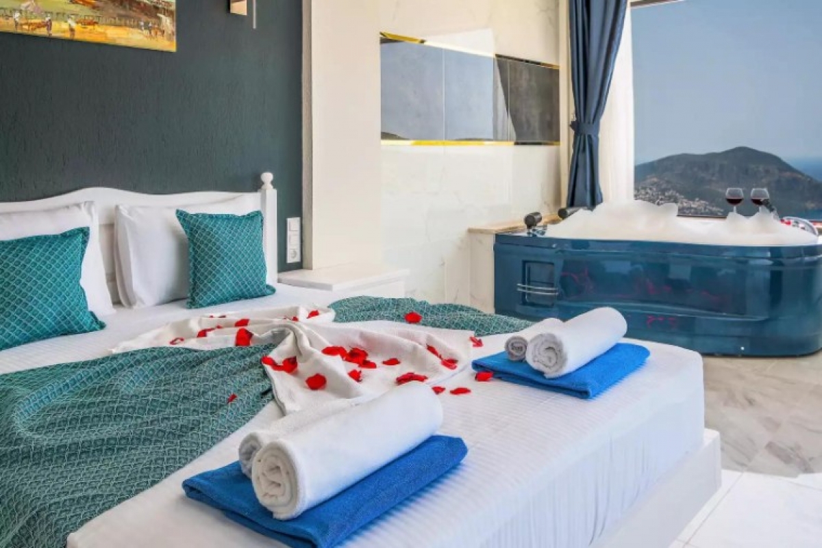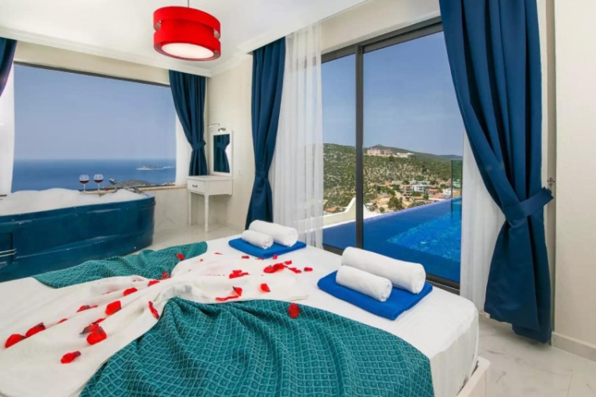 Kalkan Akbel bölgesinde eşsiz deniz ve doğa manzarasını sessiz, sakin, huzurlu bir ortamda lüks ve ayrıcalıklı detaylarıyla siz değerli misafirlerimizin, beğenisine sunan 1 yatak odalı 2 kişi konaklama kapasiteli kiralık lüks villadır. Kiralık Villa Yeniköy, muhafazakar villalar, jakuzili villalar, deniz manzaralı villalar ve lüks villalar kategorisinde yer almaktadır. Büyüleyici deniz ve doğa manzarasına sahip odalarıyla ön plana çıkan villada, akşamları sevdiklerinizle birlikte unutulmaz anlar yaşayabilirsiniz. Özel, kalp şeklindeki, denizle bütünleşmiş sonsuzluk havuzunda tatilin keyfini sürebilirsiniz. Villamızın havuzu korunaklıdır. Balayı çiftleri ve çekirdek aileler için oldukça ideal bir tatil villasıdır.
